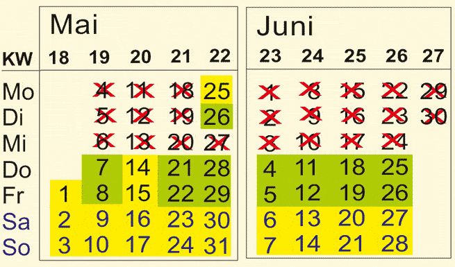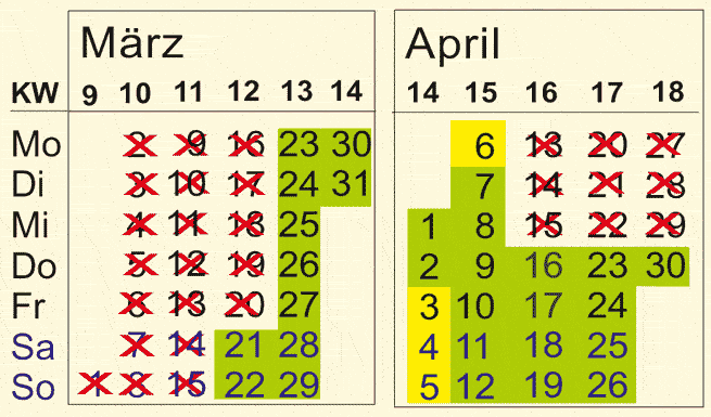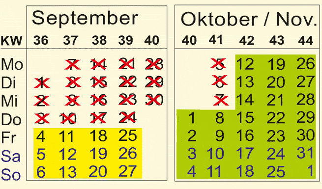 11.00 – 17.00 Uhr 10.00 – 18.00 Uhr X = geschlossen